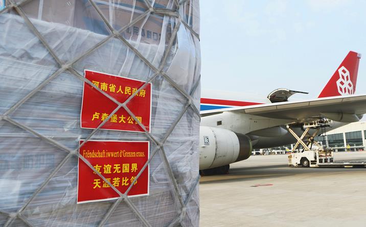 2020年2月,疫情爆發(fā)初期,盧森堡貨航和河南航投共同積極加入抗“疫”戰(zhàn)斗,除了為中國員工提供口罩、消毒棉片、防護服等物資支援外,還在原定的春節(jié)假期期間,加運了95噸醫(yī)療物資馳援中國抗“疫”一線,并根據(jù)國內(nèi)外市場的需要有序增加運力。當(dāng)年3月,河南省委、省政府為盧森堡緊急籌措了包括4500件醫(yī)用防護服、50萬只醫(yī)用外科口罩、5700只醫(yī)用N95口罩、10萬雙醫(yī)用手套、600只額溫槍、2萬瓶洗手液、1080副醫(yī)用護目鏡等在內(nèi)的首批醫(yī)療物資,并通過鄭州—盧森堡貨運航班直接運抵盧森堡。鄭盧“空中絲綢之路”被盧森堡政府譽為“盧森堡及其他歐洲地區(qū)的生命線,是一條雪中送炭的空中橋梁。”在這條絲路的連接下,豫盧雙方成為共建共享、休戚與共的“一家人”。