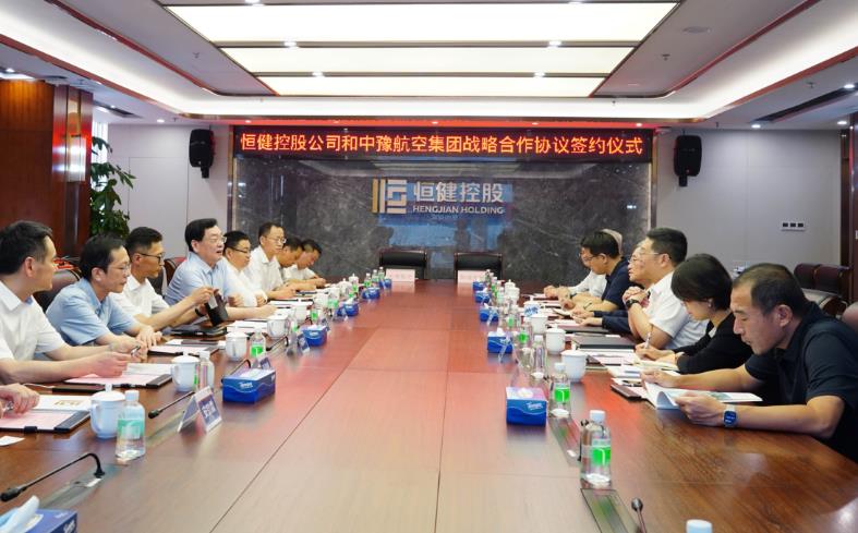 8月13日,中豫航空集團與廣東恒健投資控股有限公司(以下簡稱恒健控股)在廣州簽訂戰略合作框架協議。中豫航空集團黨委書記、董事長張明超,恒健控股黨委書記、董事長唐軍出席簽約儀式并座談交流。雙方相關業務人員參加。