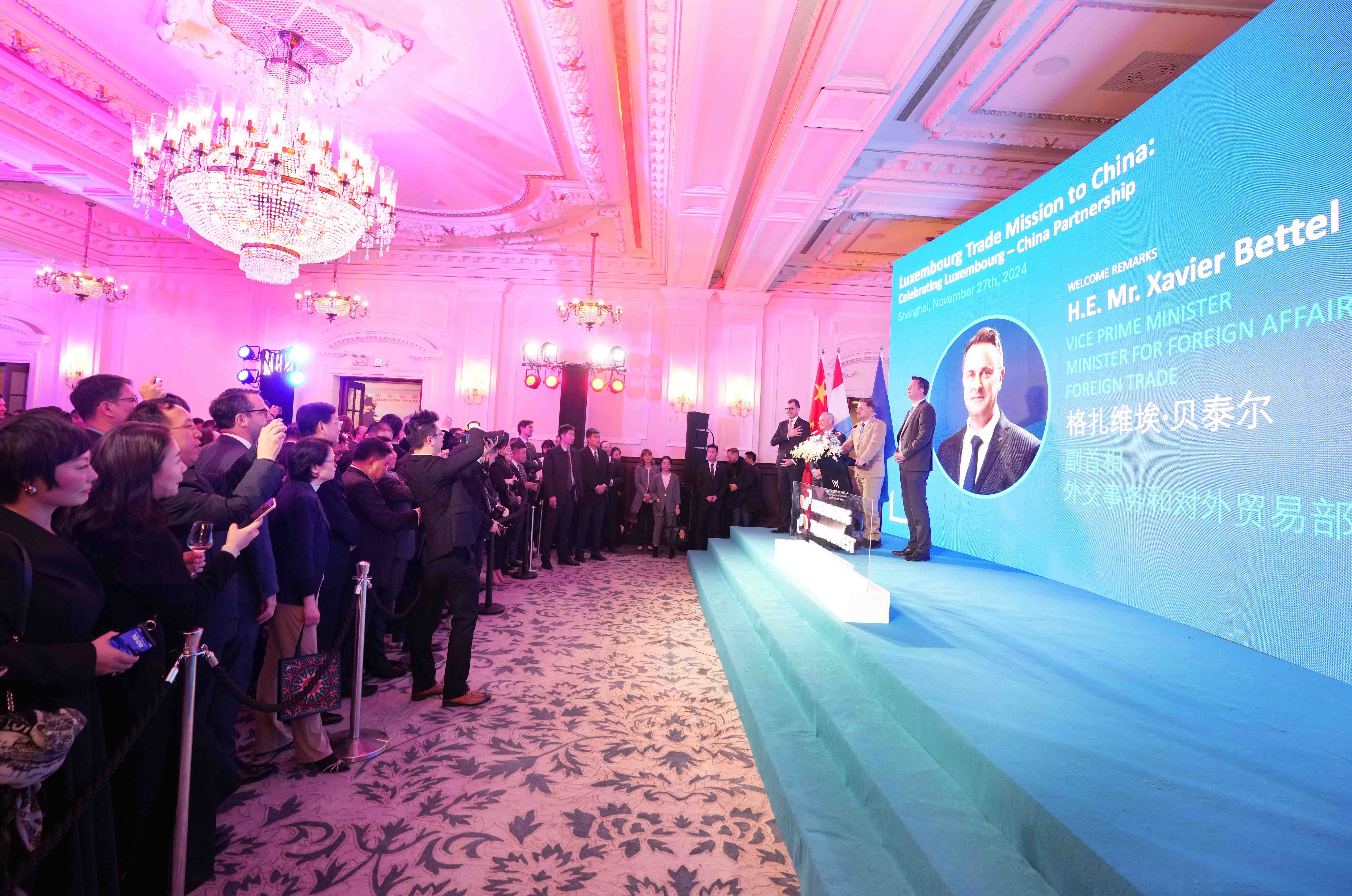 11月27日,盧森堡-中國(上海)商務合作論壇在上海舉行。盧森堡副首相兼外交、外貿大臣格扎維埃·貝泰爾,盧森堡經濟、中小企業(yè)、能源和旅游大臣萊克斯·德勒斯,駐華大使盧睿朗等出席。中豫航空集團黨委書記、董事長張明超受邀參加,并在盧森堡大公國商貿團訪華官方招待會上與貝泰爾、盧睿朗等就促進鄭盧“空中絲綢之路”建設溝通交流。