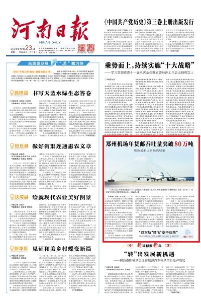 2018年,省政府、中國民航局聯合發布《鄭州國際航空貨運樞紐戰略規劃》,明確了鄭州機場國際航空貨運樞紐的戰略定位。在“空中絲路”的引領帶動下,鄭州機場國際貨郵吞吐量已連續多年位居全國第五,外向型特征明顯。今年截至12月20日,鄭州機場國際貨郵吞吐量完成45.6萬噸,占全部貨量的57.2%,同比增長22.1%。