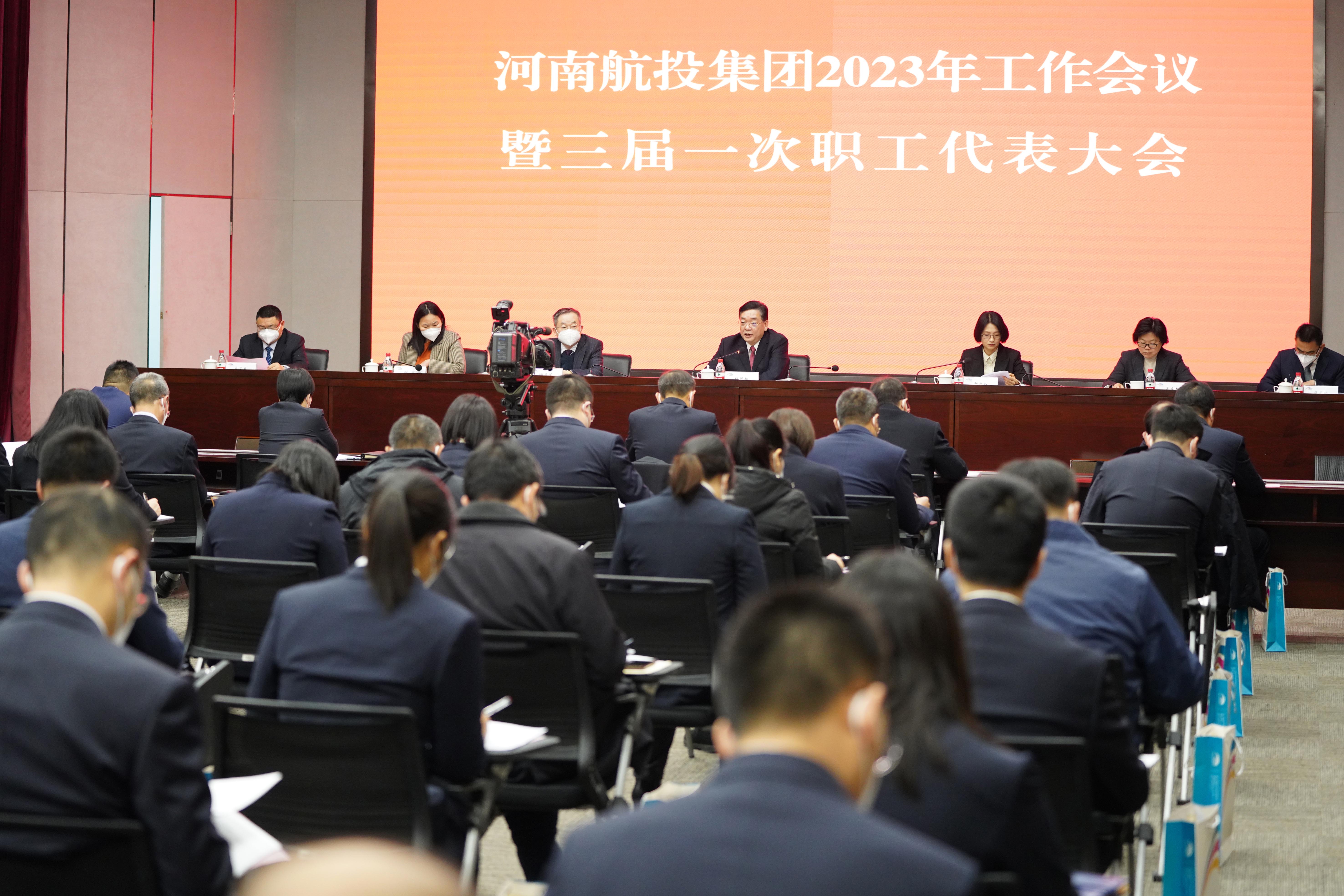 1月29日上午,河南航投集團2023年工作會議暨三屆一次職代會在航空經濟服務中心召開。會議傳達貫徹了黨的二十大及中央、省委經濟工作會議精神、省“兩會”精神,總結回顧了2022年工作,科學分析當前形勢,安排部署今年重點工作。集團黨委書記、董事長張明超在會上作《在新起點上開創河南航投集團高質量發展新局面》工作報告,黨委副書記、工會主席郭艷紅主持會議,領導班子其他成員、中層管理人員和部分員工代表參會。