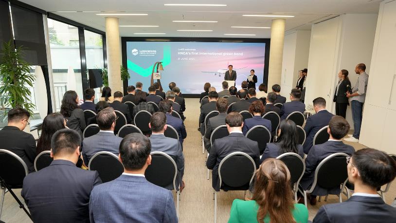 當(dāng)?shù)貢r(shí)間6月21日上午,中豫航空集團(tuán)以河南航投為主體發(fā)行的3年期人民幣境外債券上市儀式在盧森堡證券交易所舉行。這是中國(guó)企業(yè)在歐洲發(fā)行的首支支持可持續(xù)航空燃料(SAF)的綠色債券,也是河南企業(yè)發(fā)行的首支離岸人民幣綠色債券,鄭盧“空中絲路”資金融通實(shí)現(xiàn)新突破。