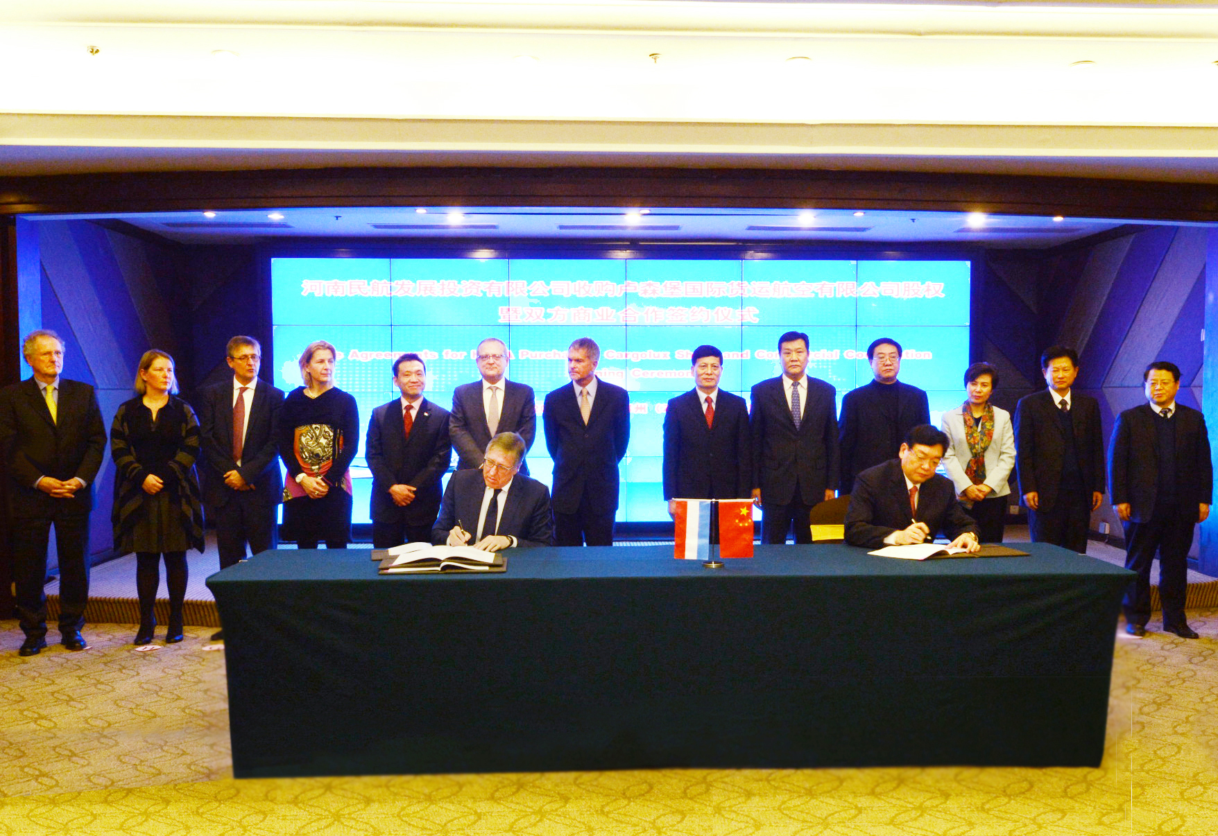 根據協議,河南航投將出資2.1625億美元收購盧貨航35%的股權,同時在鄭州設立“雙樞紐發展基金”,??顚m椨糜卩嵵?盧森堡“雙樞紐”戰略模式的構建和鄭州航空貨運市場的培育。河南航投入股盧貨航后,將開辟鄭州-盧森堡貨運航線,初期由盧貨航投放一周四班的運力,后期根據市場開發程度和鄭州樞紐的建設速度,逐步增加運力投放規模,加密航班,構建以鄭州為亞太物流中心、以盧森堡為歐美物流中心,覆蓋全球的航空貨運網絡。將來,河南航投還將與盧森堡政府、盧貨航一起,在地面操作、倉儲分撥、冷鏈物流、飛機維修和飛行培訓等方面展開全產業鏈的深度合作,以做大做強實驗區航空經濟產業鏈,提升物流業服務水平,實現高端產業集聚。