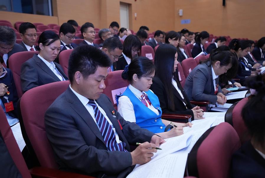 集團黨委書記、董事長張明超代表集團黨委向大會作報告,與會代表在現場認真聆聽。